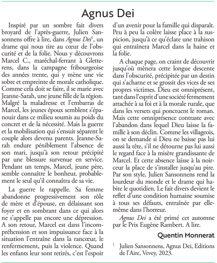 Le Courrier Lavaux-Oron-Jorat , critique par Pierre Jeanneret, 23 novembre 2023